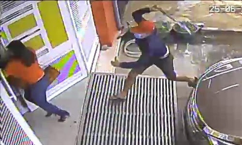 Tên côn đồ đeo khẩu trang, cầm mã tấu hung hăng tấn công người phụ nữ tại thành phố Pleiku.